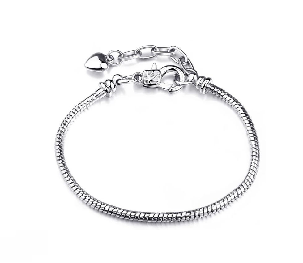 Este brazalete Moments es elegante y altamente personalizable con una cadena de serpiente y broche de corazón, Perfecto para expresar tu estilo único y crear combinaciones únicas con tus charms favoritos. Hecho con materiales de alta calidad, este brazalete es una adición imprescindible a tu colección de joyas.